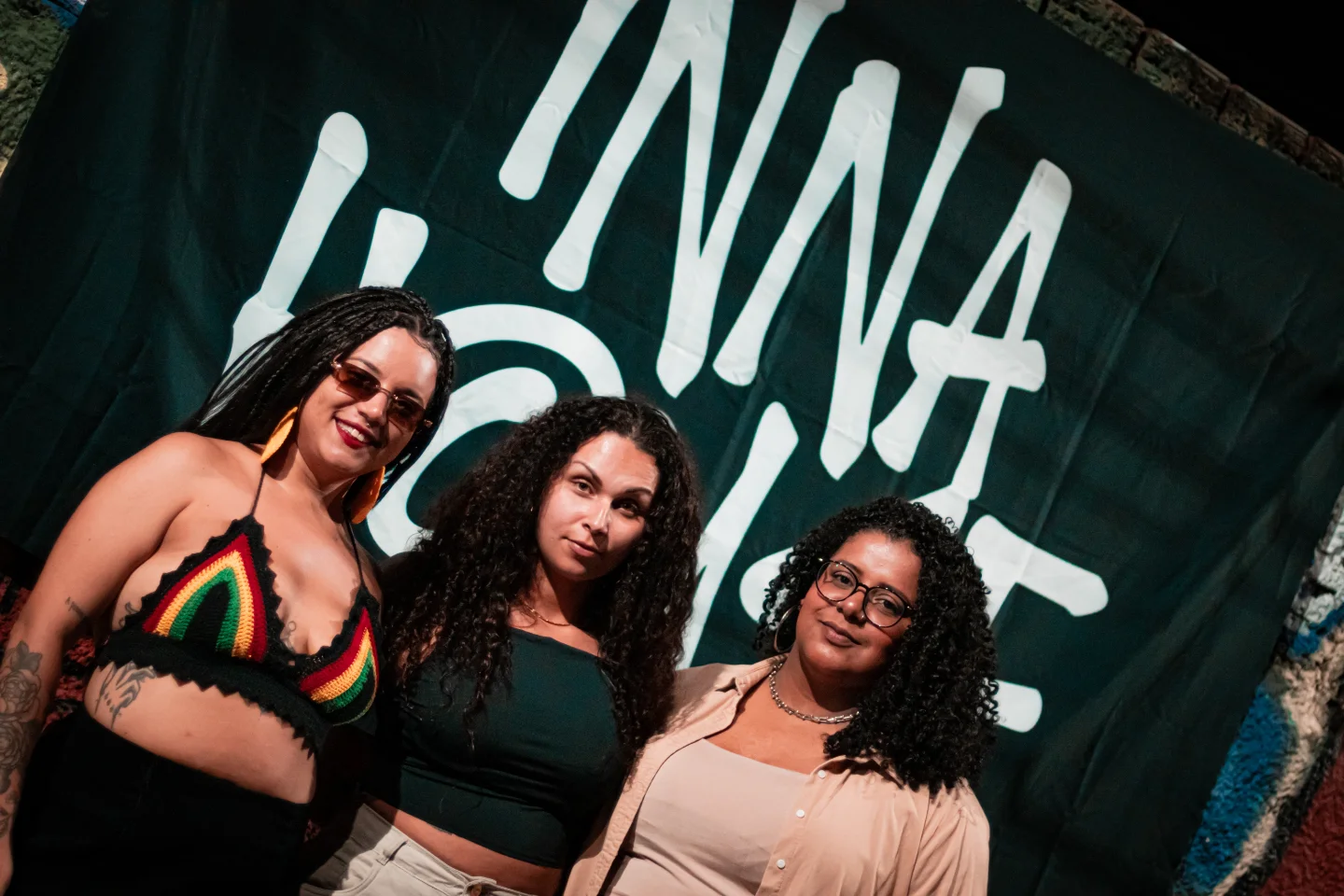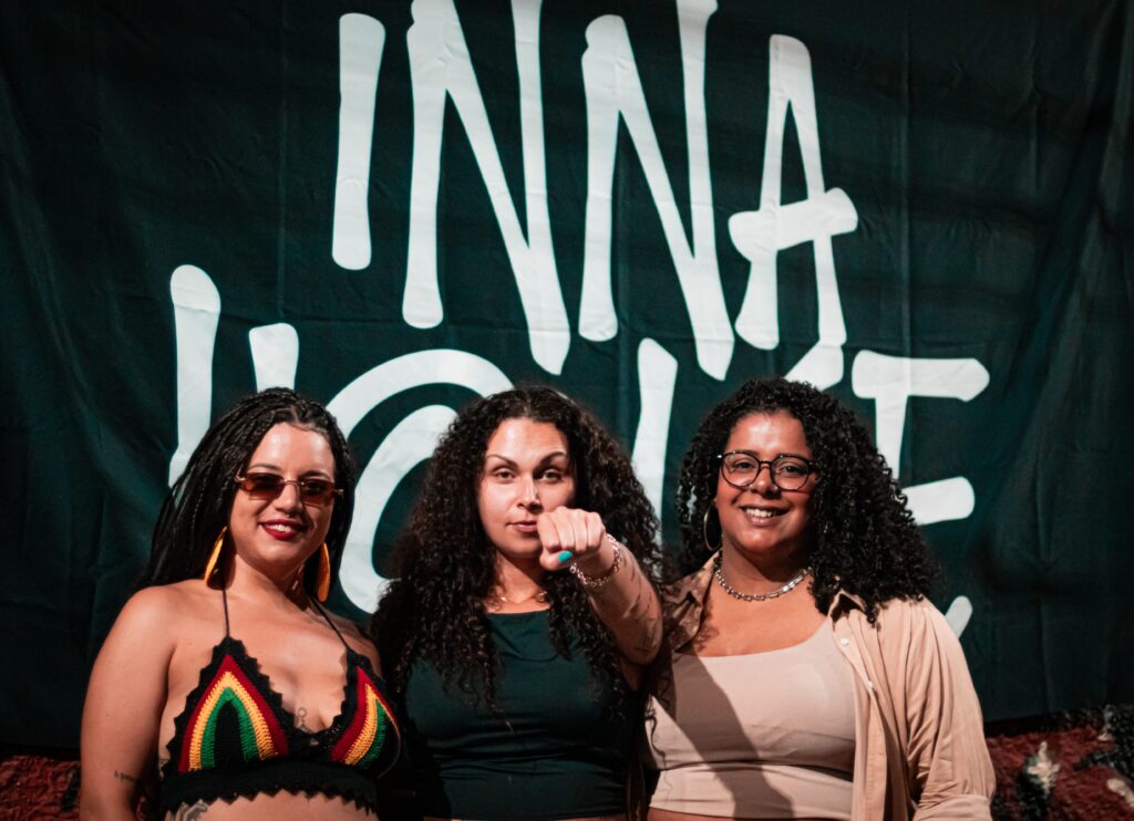 “O Inna house é um coletivo de cultura soundsystem criado por três minas, que produz eventos, faz pesquisa e propõe ações formativas na cidade de Marília/SP. O coletivo é composto por Babi Bulgare, na coordenação de eventos, Andreza Alves na produção executiva e Caroline Quini na curadoria.